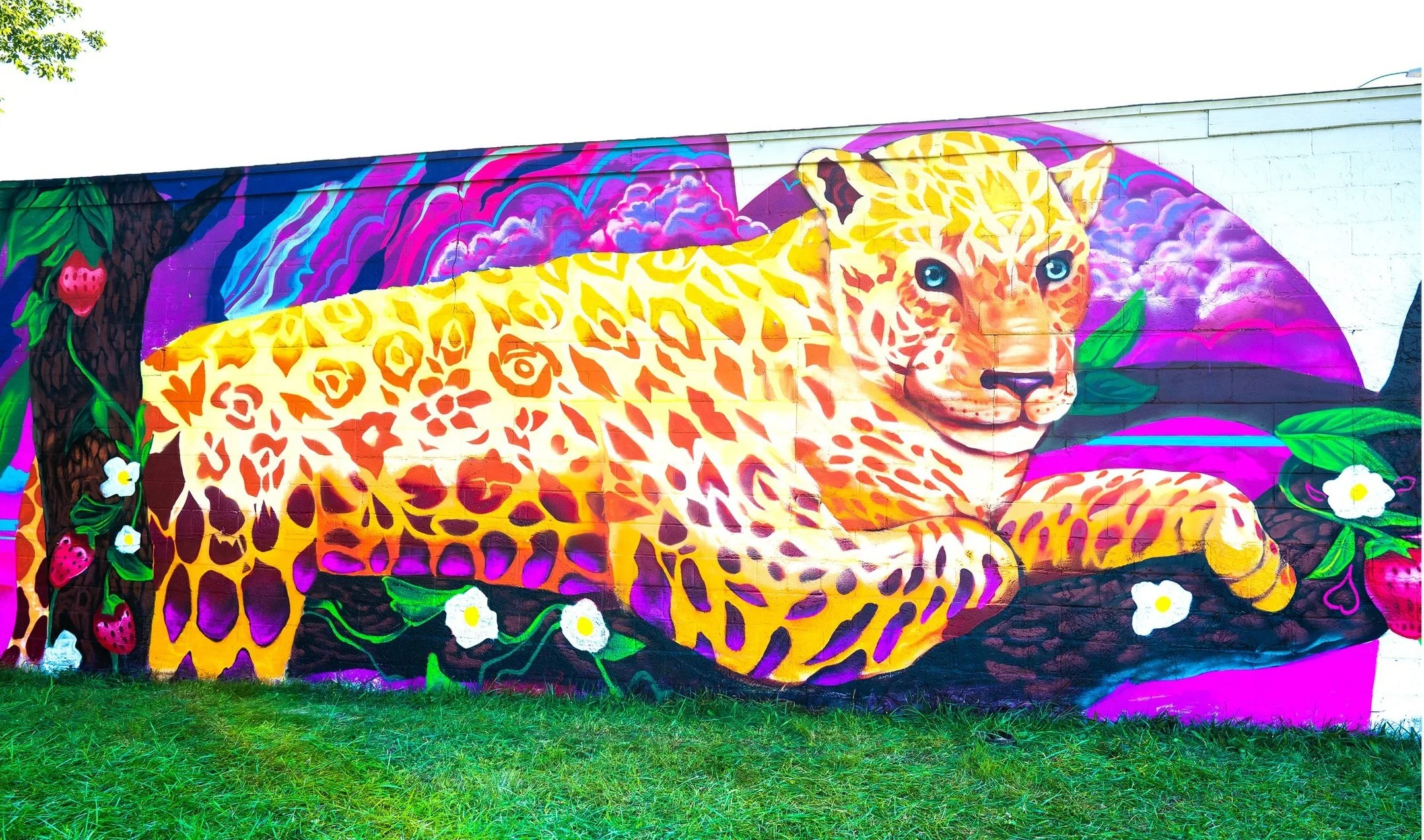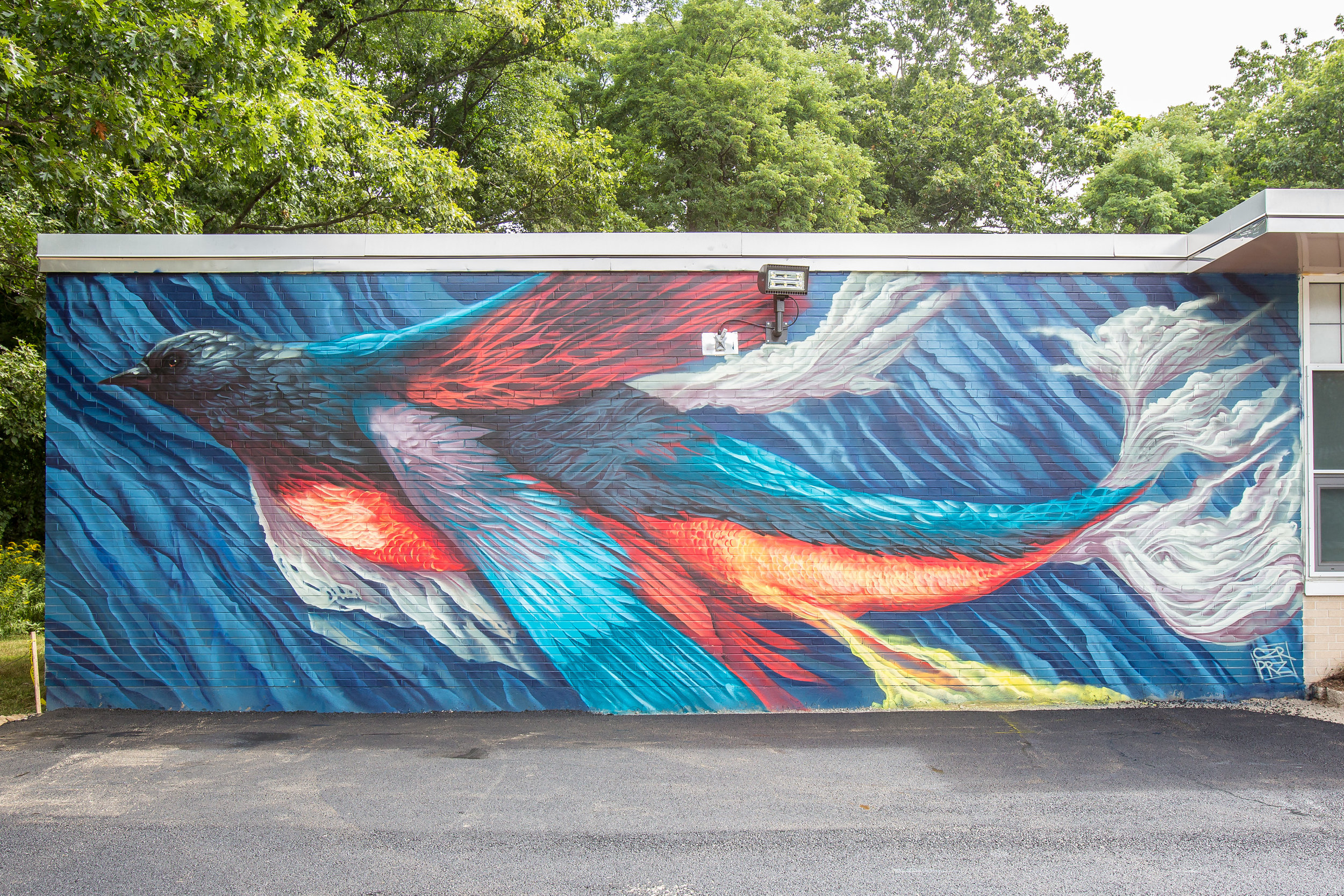 Tezcatlipoca 14’x50’ “Color The Creek” Mural Festival. August 2022 Battle Creek MI