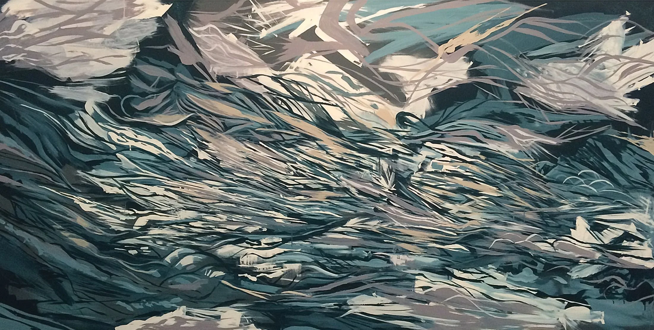 All Nighter, 2016. Mixed media on wood panel. 48” x 96”; Terrain Collection